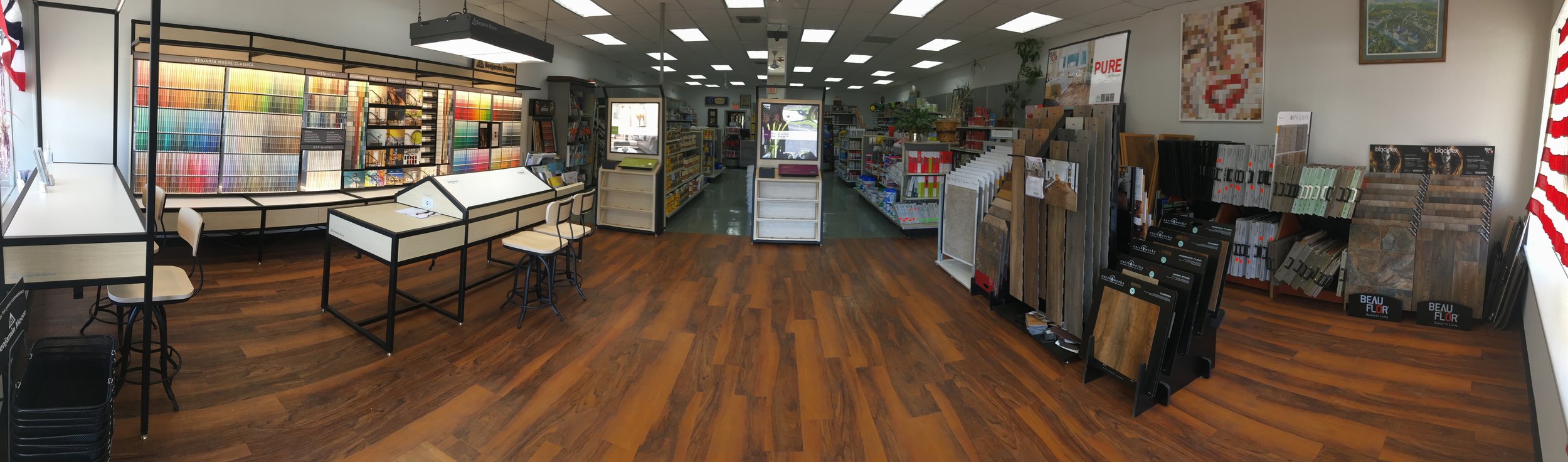 Having a hard time picking those colors for your next project, even a whole house or office, we have on staff color consultants to assist you in choosing the right color. We also sell half pint sized samples in almost every color Ben Moore has to test before you paint that room, or house. We are also experts at color matching, whether it is fabric or existing paints bring us in a sample to match.